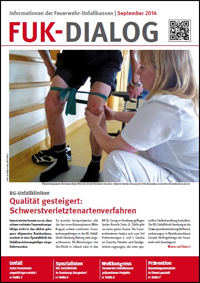 Die neue Ausgabe des FUK-Dialog ist erschienen und kann als PDF-Datei heruntergeladen werden. Themen der neuen Ausgabe sind unter anderem: Das neue Schwerstverletztenartenverfahren; Zehn Feuerwehrangehörige bei Unfall verletzt; Spezialisten im BG-Unfallklinik in Hamburg-Bergedorf; Feuerwehr-Unfallkassen präsentieren Projekte beim Weltkongress; Baumbiegesimulator in Dienst gestellt; ...