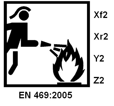 Kennzeichnung nach alter und neuer DIN EN 469 (Die Schutzstufe und -grade können auch andersseitig am Piktogramm angeordnet werden.)