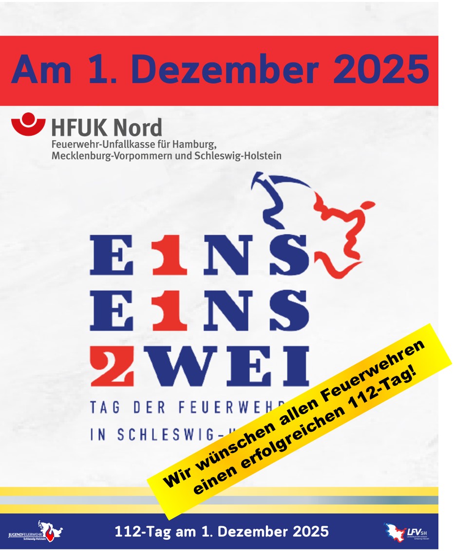 Bei vielen Feuerwehren in Schleswig-Holstein hat sich der landesweite 112-Tag am 1.12. bereits als fester Bestandteil im Veranstaltungskalender etabliert. In diesem Jahr findet der dritte 112-Tag am Montag, den 1. Dezember 2025 statt.