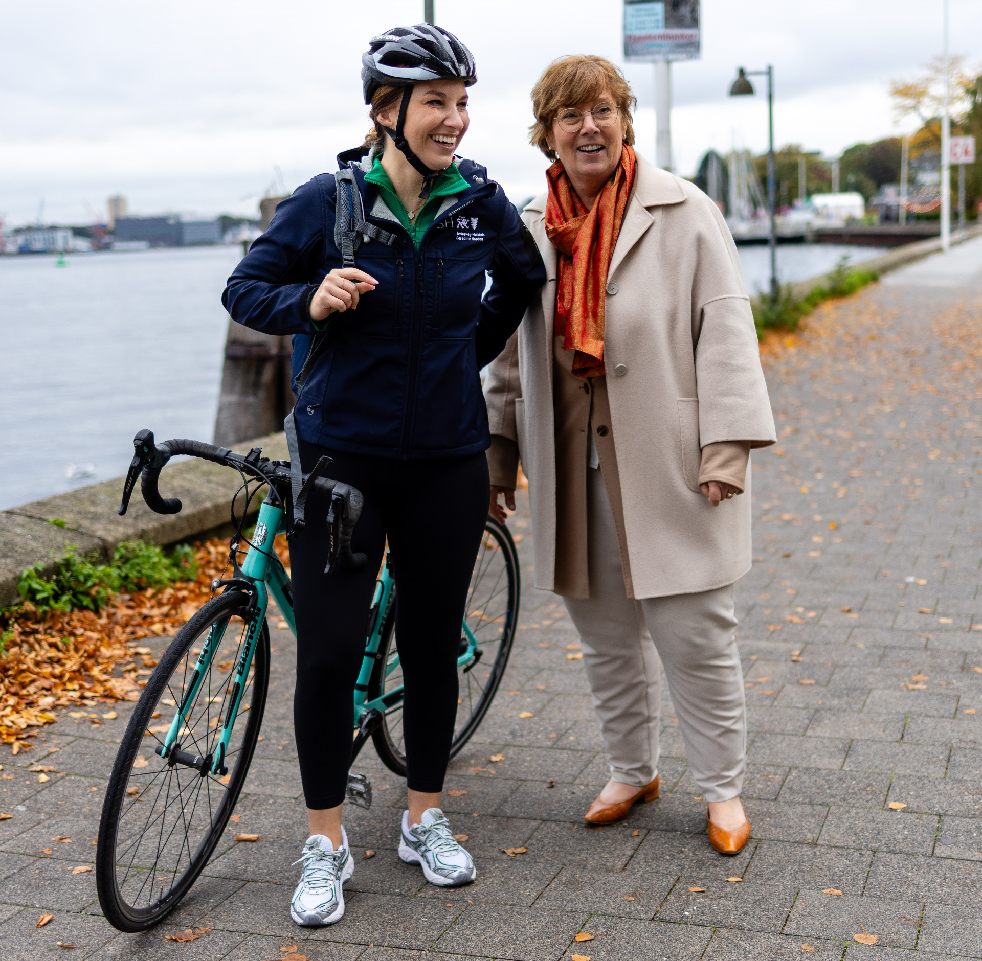 Nach einem längeren Aufenthalt im Kieler Raum hat sich der Laufrucksack nun wieder auf die Reise in den Kreis Rendsburg-Eckernförde gemacht. Das erfolgte aktuell mit tatkräftiger Unterstützung der schleswig-holsteinischen Landesregierung: In Kiel nahm Innenministerin Sabine Sütterlin-Waack den Rucksack entgegen, übergab diesen nach einem strammen Fußmarsch an Staatssekretärin Magdalena Finke, die ihn per Gravelbike weiter zur Holtenauer Hochbrücke brachte. Ein Videoclip über die Unterstützung der Landesregierung kann hier angeschaut werden. (oder über https://www.facebook.com/share/v/1CtGdqmFA6/)