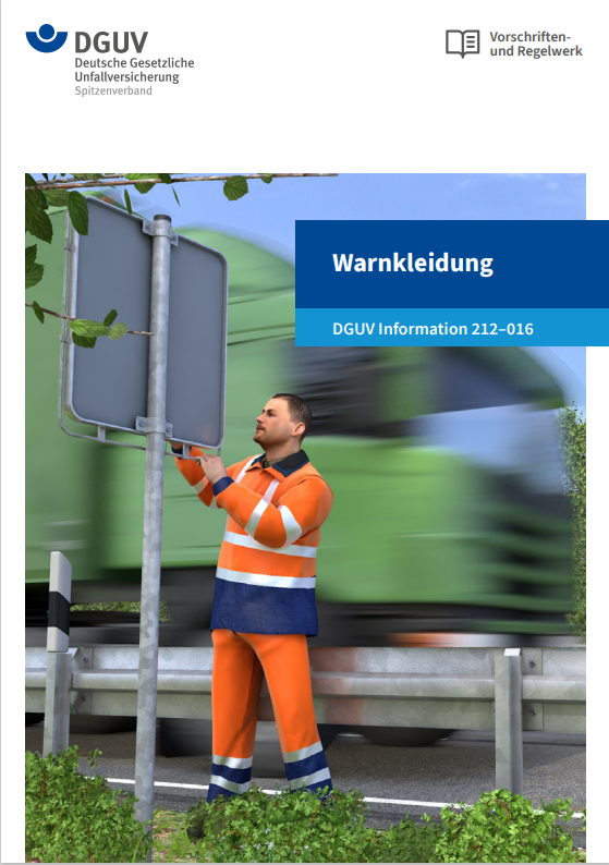 Frühzeitig gesehen werden ist ein wichtiger Bestandteil der Unfallverhütung. Moderne Warnkleidung leistet hier einen wichtigen Beitrag, vor allem bei Arbeiten auf Baustellen oder im Straßenverkehr. Mit der DGUV Information 212-016 „Warnkleidung“ veröffentlicht die DGUV eine Broschüre, die die Pflichten von Unternehmern, Unternehmerinnen und Versicherten hinsichtlich der Auswahl der Verwendung, der Reinigung und des Austausches beschreibt.