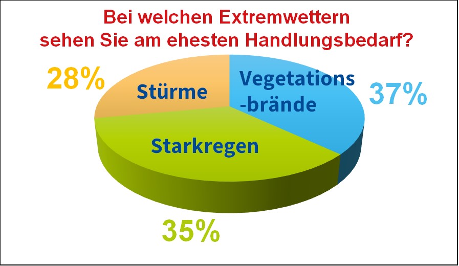 Hitzewellen und Vegetationsbrände haben aus der Sicht der Befragten in jedem