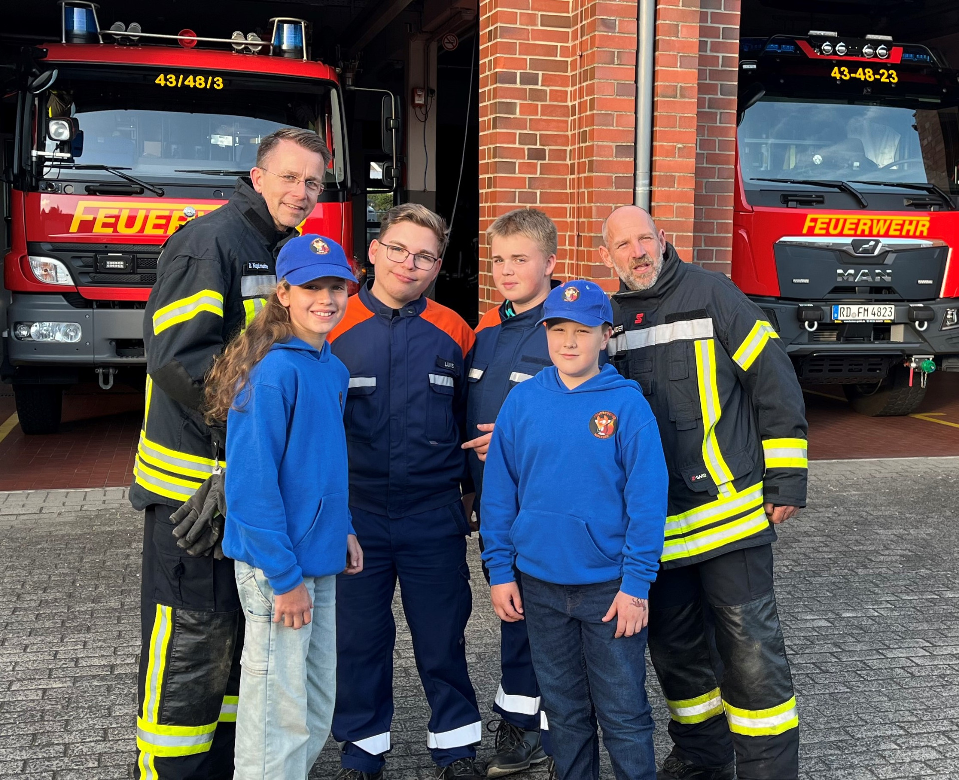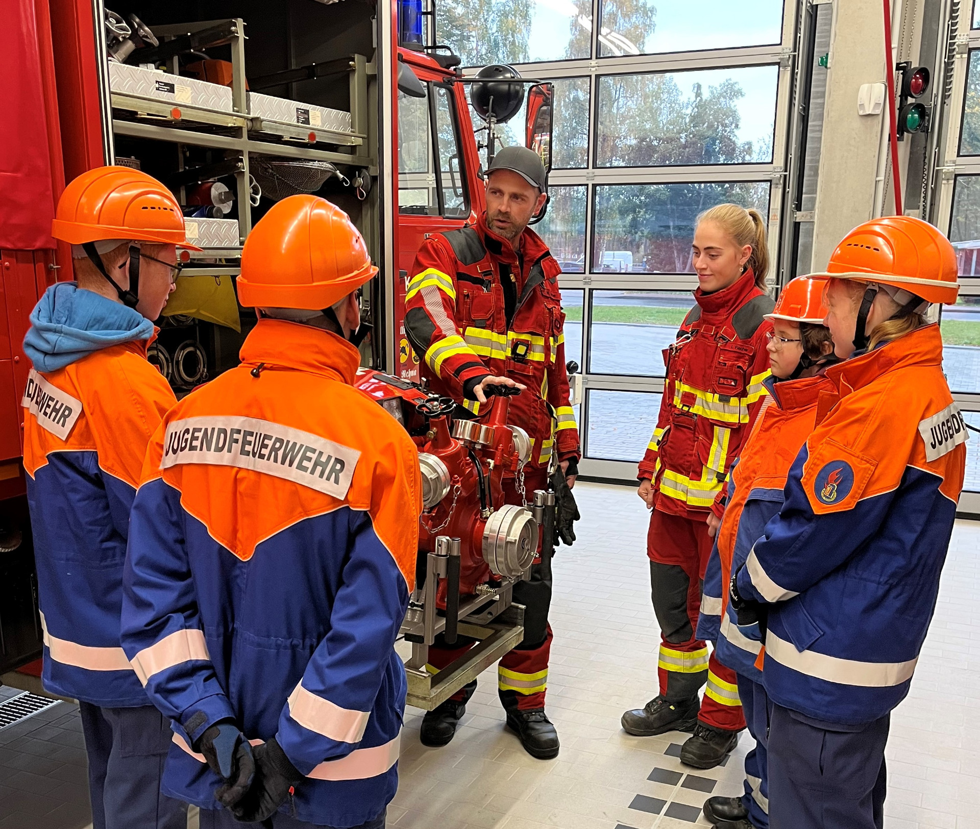 Jugendliche als Feuerwehrangehörige am Dienst der aktiven Feuerwehrangehörigen