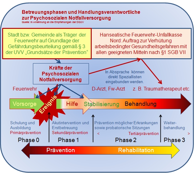 Greifen diese Hilfen nicht, kann durch die Hanseatische Feuerwehr-Unfallkasse Nord weiterführende psychotherapeutische Hilfe organisiert werden. Dies setzt voraus, dass die Erkrankungen auf ein Ereignis im Feuerwehrdienst zurückzuführen sind.