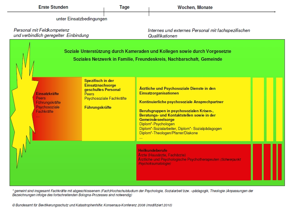 Weitere Informationen über die Psychosoziale Notfallversorgung für Einsatzkräfte vor, während und nach belastenden Einsätzen vermittelt die folgende Übersicht.